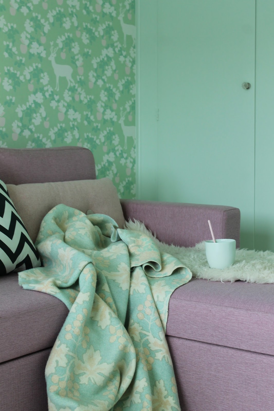 Ein skikkeleg gladtapet! Den grøne veggfargen har eg bomma litt med,